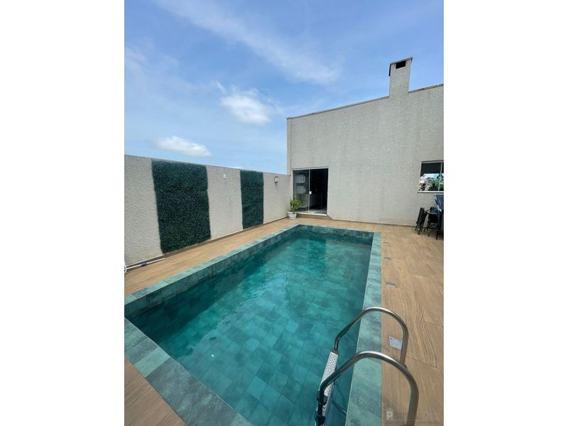 Além disso, a casa conta com uma ampla sala, uma cozinha bem equipada e um espaço de serviço. Desfrute de momentos incríveis com amigos e familiares na área gourmet com churrasqueira, ideal para encontros. O imóvel ainda conta com banheiro social, lavabo, piscina e 2 vagas na garagem para maior praticidade.