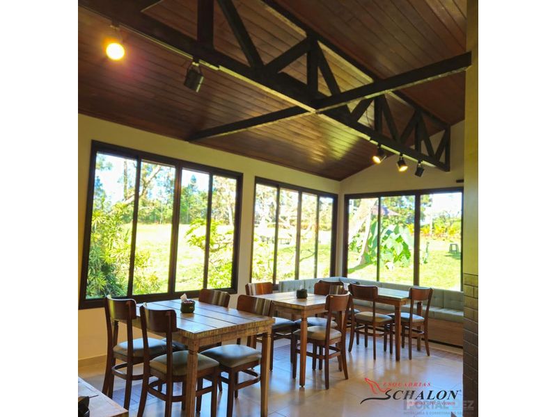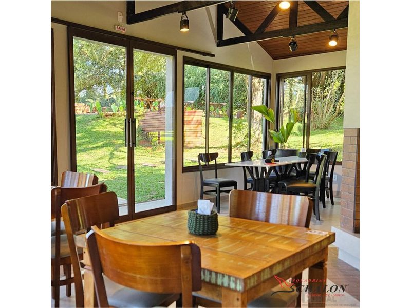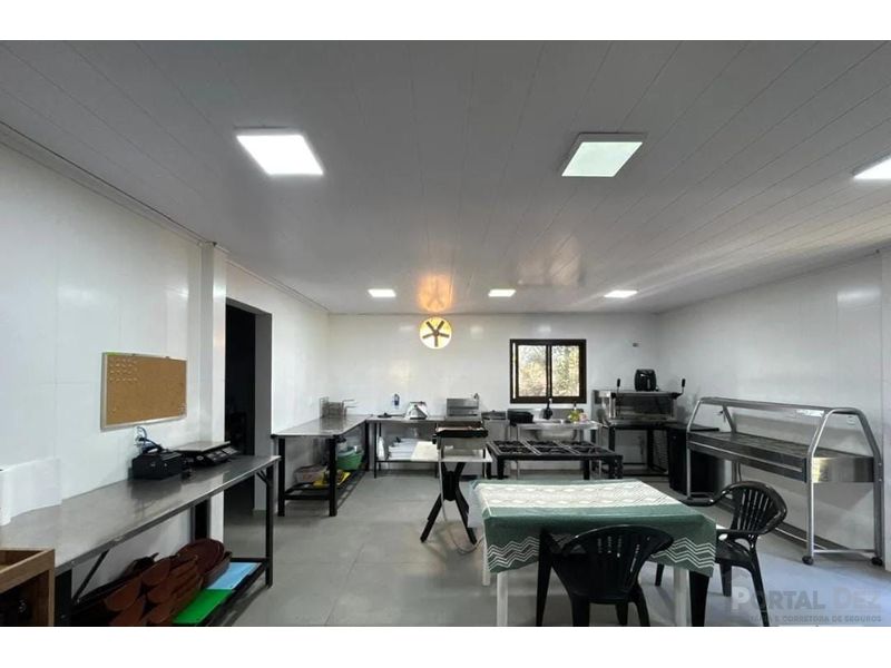 Imóvel Comercial com residência inclusa, área total de 11.000m², contendo restaurante com 3 banheiros femininos, 3 banheirois masculinos, cozinha, dispensa, utensílios, bar, cozinha completa, área kids, mesas e cadeiras para 150 pessoas.
