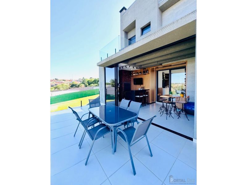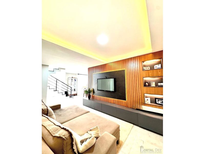 Sobrado medindo 180m², com terreno medindo 200m². Com sala de tv, sala de jantar, cozinha, 3 quartos sendo 1 suíte e 1 demi-suíte, lavabo, espaço gourmet e garagem para 2 carros cobertos, e 2 descobertos.